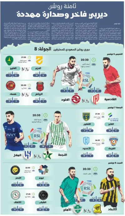 ستكون الجولة الثامنة لدوري روشن السعودي للمحترفين، التي تنطلق اليوم، وتدور رحى منافساتها على مدار 3 أيام متتالية، مختلفة للغاية،…