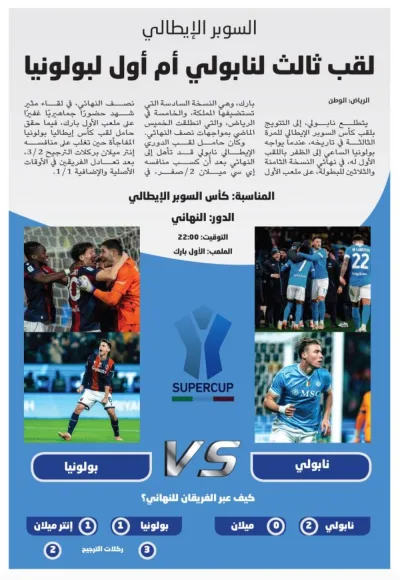 يتطلع نابولي، إلى التتويج بلقب كأس السوبر الإيطالي للمرة الثالثة في تاريخه، عندما يواجه بولونيا الساعي إلى الظفر باللقب الأول له،…