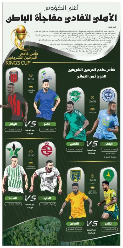 سيكون عشاق كرة القدم السعودية على موعد مع إثارة جديدة ومختلفة، حينما تنطلق اليوم، مواجهات ثمن نهائي كأس خادم الحرمين الشريفين بـ4…