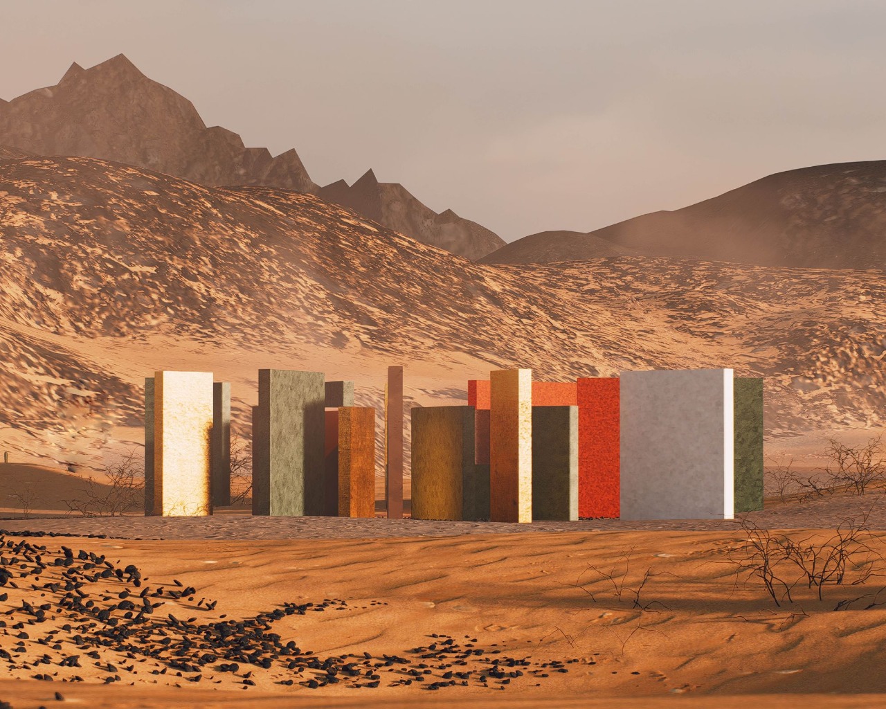 مستلهمةً الخطوط الانسيابية للكثبان الرملية، تقدم المصممة والمعمارية الإيرانية ندى سلمانبور، المقيمة في الإمارات، عملها الفني “نَدّ”، وهو تركيب ضوئي معياريّ يعتمد على منهج بحثي عميق.